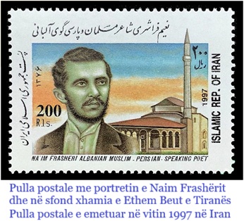 Në vitin 1997, Republika Islamike e Iranit publikoi një pullë postare përkujtimore, ku portreti i Naim Frashërit u vendos si simbol i respektit për poetin dhe dijetarin shqiptar. Në këtë pullë lexohen fjalët: “Naim Frashëri Albanian Muslim. Persian Speaking Poet” (Naim Frashëri, mysliman shqiptar. Poet që flet persisht), duke evidentuar jo vetëm identitetin kombëtar dhe fetar të Naimit, por edhe njohuritë e tij në letërsinë persiane.