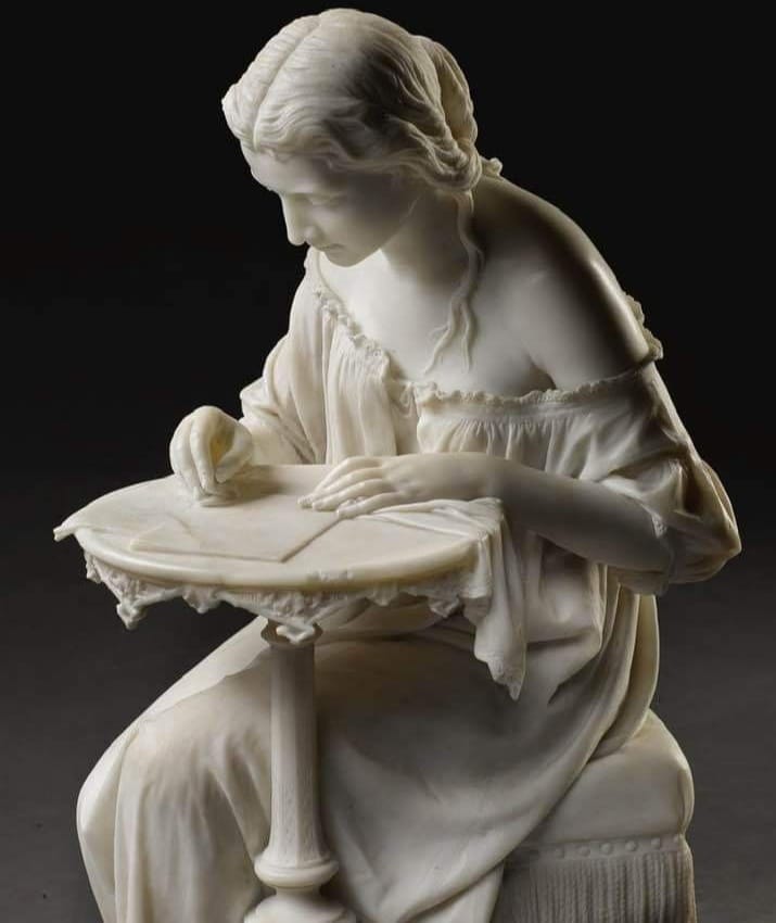 Skulptura "Vajza që shkruan" e Giovanni Spertini (1821-1895), realizuar në mermer më 1874, është një vepër që mishëron ndjeshmërinë e Rilindjes Italiane në lidhje me përfaqësimin e grave si figura të harmonisë dhe mendimit të thellë.