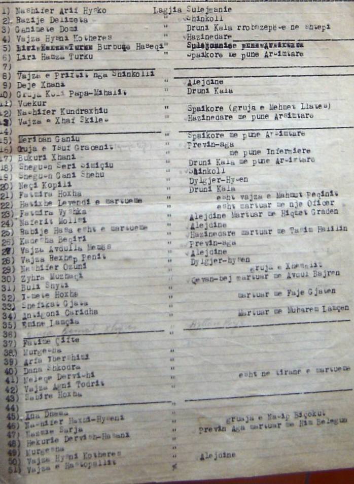 Vajza nga Elbasani, të cilat ndoqën kursin e rrobaqepësisë, mundësuar nga murgeshat e atij qyteti. Foto e vitit 1943. Emrat bashkëlidhur, sipas numrit në foto.
