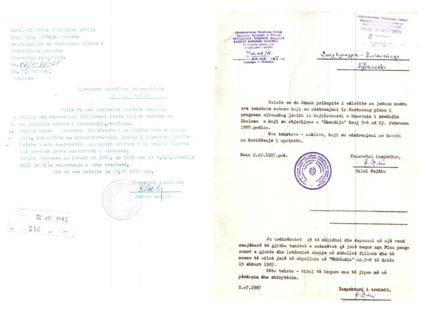 Menjëherë në Preshevë, Inspektori arsimor komunal ndërmori një aksion dhe urdhëroi që nga Biblioteka e Qytetit dhe të shkollave të largohet literatura e përmendur. Mirëpo fal angazhimit të drejtorisë së Shtëpisë së Kulturës dhe të organizatave shoqëroro politike të Preshevës ky angazhim solli rezultate dhe nga inspektori u morën vetëm 7 libra.