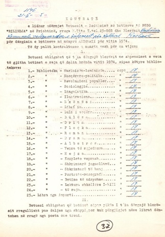 Kështu më vitin 1975 nënshkruam një marrëveshje bashkëpunimi, kontratë automatike me “Rilindjen” që të gjitha botimet e saja, botimet import nga Shqipëria, botimet në gjuhën shqipe të botuara në Mal të Zi dhe në Maqedoni t’i blejmë nga 17 ekzemplarë. Gjithashtu, Biblioteka Amë filloi të pasurohet me gazeta dhe revista në gjuhën shqipe: Rilindja, Zëri i Rinisë, Fjala, Shkëndija, Kosovarja, Jeta e Re dhe Përparimi.