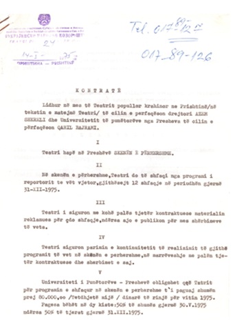 Me rëndësi është të ceket se më vitin 1975 nënshkruam me Teatrin e Prishtinës kontratë për Skenën e Përhershme në Preshevë, me të cilën çdo shfaqje teatrale që ishte premierë në Prishtinë shfaqej edhe në Preshevë.