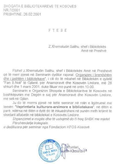 së Kosovës më 1993, pr pjesëmarrje në Simpoziumin dhe të Institutit Albanologjik të Prishtinës,