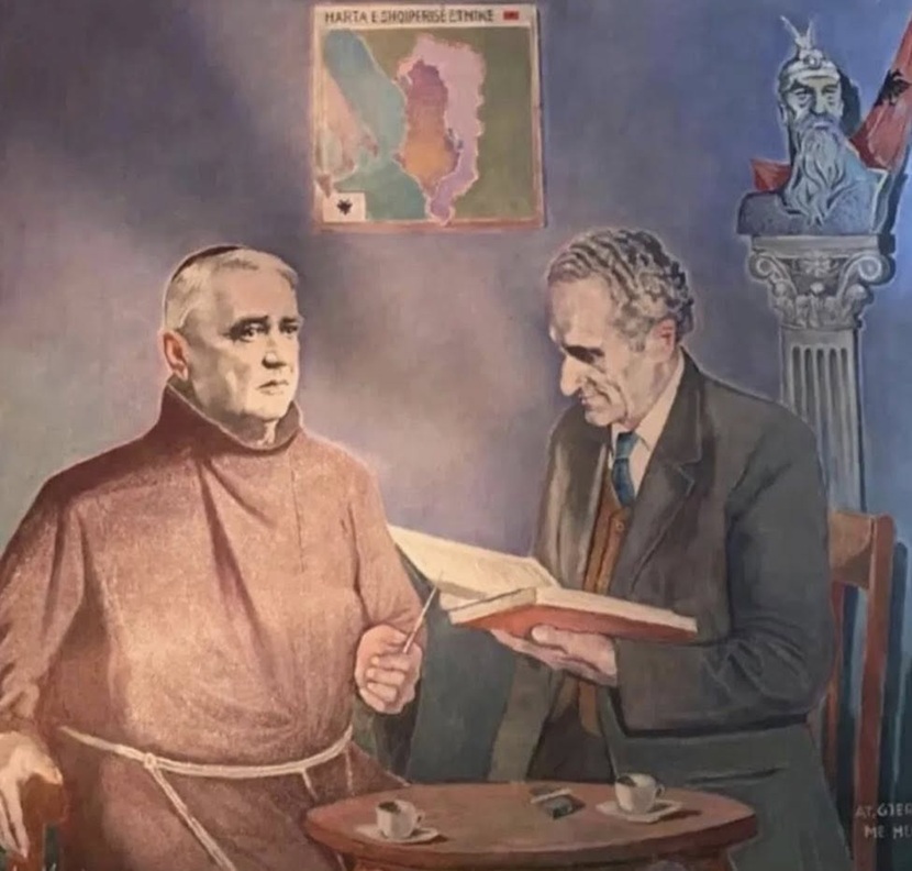 Poetin Atë Gjergj Fishta patriark me tim atë me libër në dorë, diçka po i