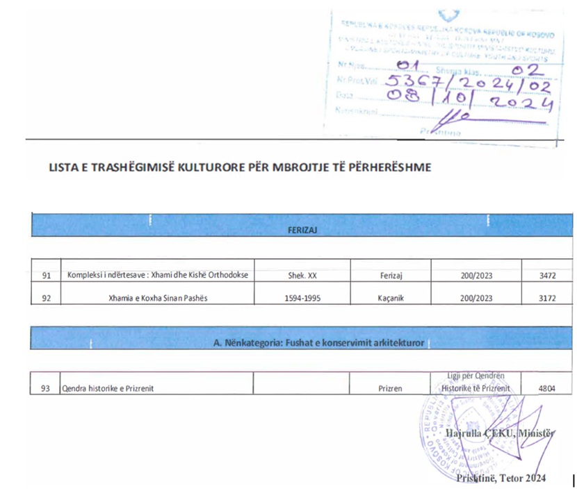 Qazim Namani: Gjendja në trashëgimin kulturore 1999-2012 dhe lista e monumenteve në mbrojtje të përhershme