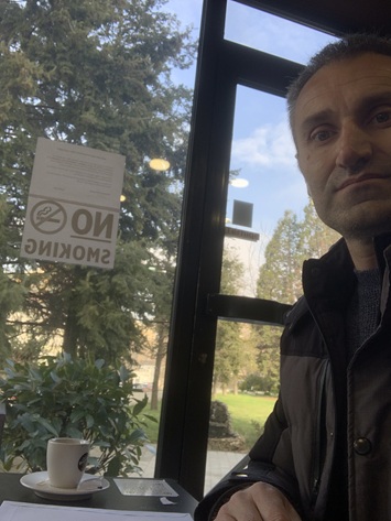 puna, nga zyra ku qëndronte dhe zunë vend duke u rehatuar në një kafene me