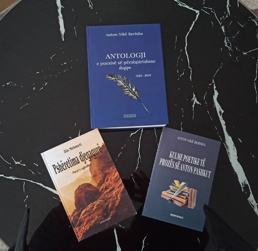 Jemi bashkë me Gjon Krasniqin, një emër i mirënjohur humanisti bashkëkohor, që ka bërë gati për botim dy libra, një roman të vetin dhe letrat e Senekës, që vijnë për herë të parë të plota në shqip. Në Prishtinë takohemi me Profesor Anton Nikë Berishën dhe të birin, profesor Labinotin, dekan i Letërsisë në Universitetin e Gjakovës, që na ftojnë për drekë. Shihemi herë pas here në Prishtinë, Tiranë, Shkodër, Lezhë, Mirditë etj. Profesor Antoni nuk është asnjëherë duarbosh, por plot me libra të zgjedhur. Kësaj here na dhuron një vepër mjaft autentike e rëndësishme hartuar prej tij, siç është “Antologji e poezisë së përshpirtshme shqipe” (1555 -2019), botim i “Faik Konica” Prishtinë, 554 faqe; librin studimor “Kulme poetike të prozës së Anton Pashkut”, botim i “Beqir Musliu”, librin me poezi të zgjedhura “Pshëretima djegagurë” të Din Mehmetit, gjithashtu botim i shtëpisë botuese Beqir Musliu” - Gjilan, që drejtohet nga poeti Sabit Rrustemi, etj.