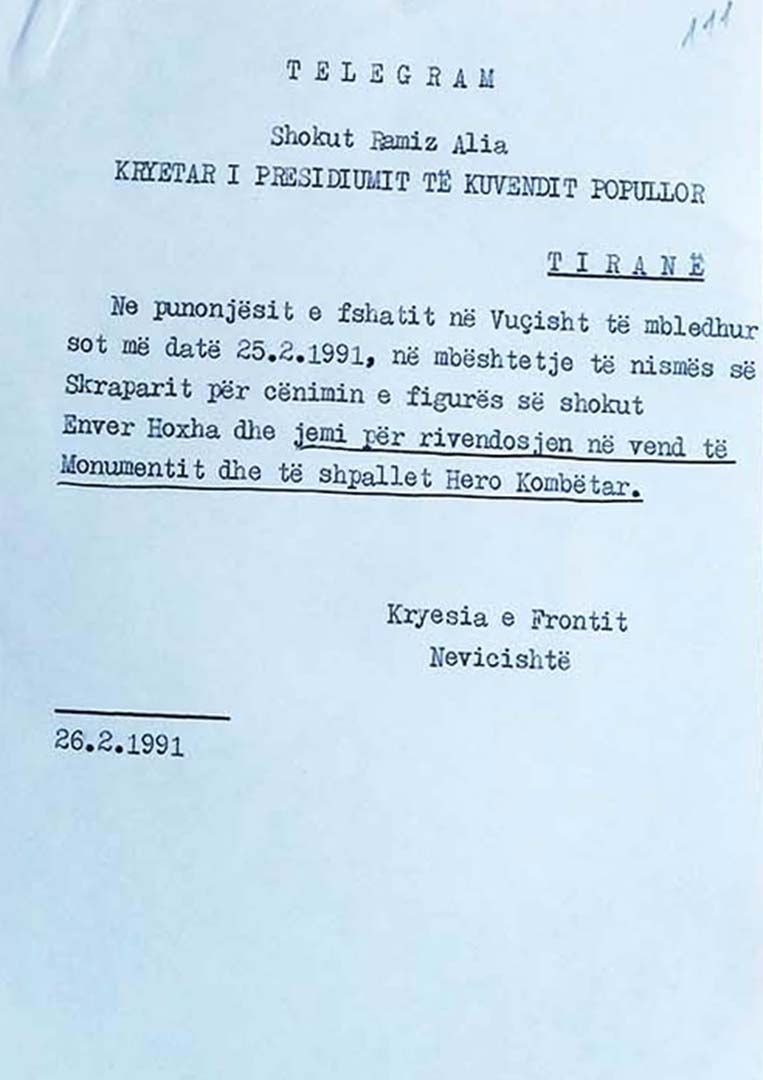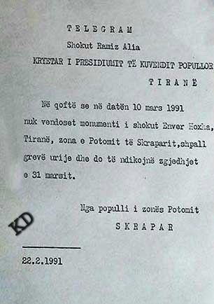Ultimatumi i dytë nga Potomi. Vendosej data 10 mars 1991 si afat. Edhe ky telegram tronditi botën.