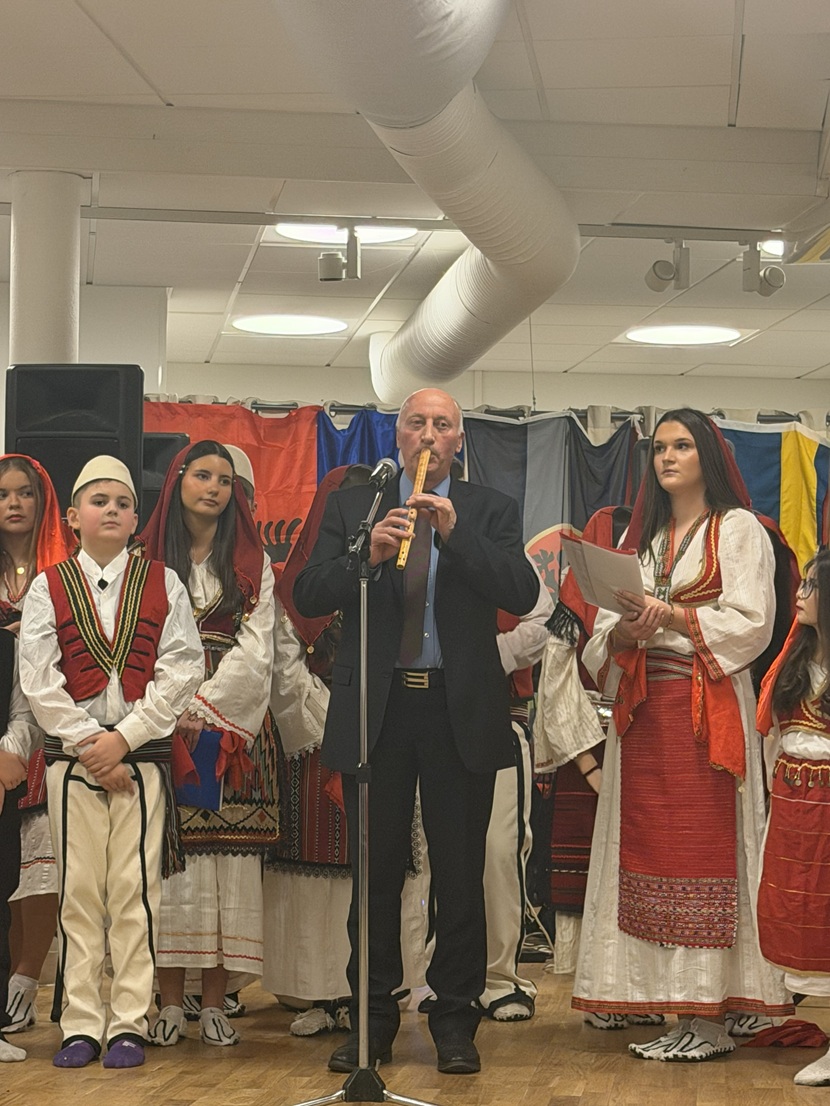 Në vazhdim, instrumentisti Mustafë Berisha interpretoi me fyell melodinë “Fyelli i Bariut”, një tingull që simbolizon mërgimin, vetminë dhe lidhjen e thellë shpirtërore me atdheun. Këtë moment të veçantë artistik e shoqëruan valltarët e SHKSH “Shën Nënë Tereza” në Engelholm, duke i dhënë interpretimit një dimension të plotë kulturor dhe emocional.