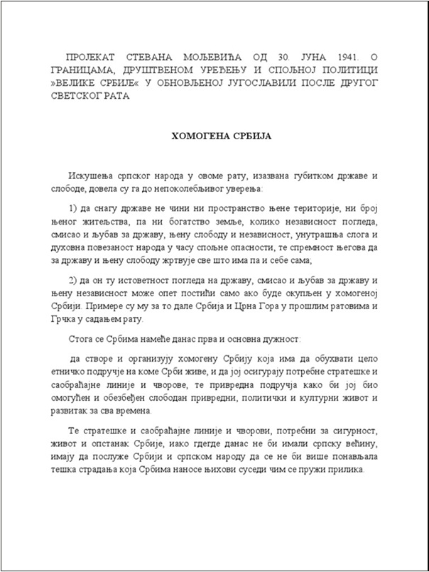 memorandum që jo vetëm argumentonte nevojën e krijimit të një shteti serb mbi