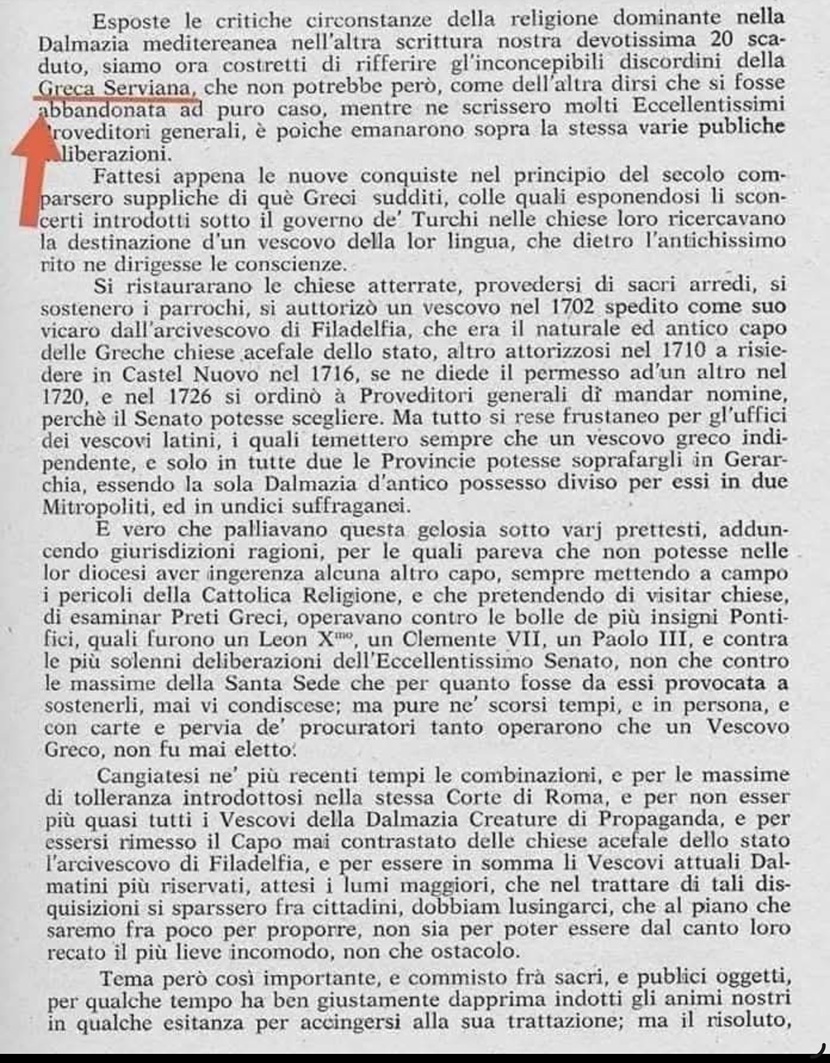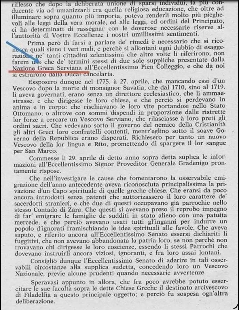 E kemi në dorë një dokument të Republikes se Venedikut per ortodokset e Dalmacisé të vitit 1755, vit ky kur serbët nga trillimi i Rusisë ishin ende në laboratorin e fasifikimit .