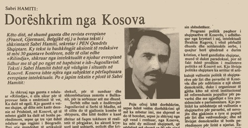 Sabri Hamiti: Dorëshkrim nga Kosova