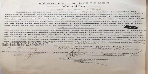 Me vendimin nr.95, datë 23.1.1937, Këshilli i Ministrave vendosi formimin e një komisioni të përbërë nga:-Teki Selenica, anëtar i Këshillit të Shtetit-Pandeli Nase, drejtor i Seksionit Politik në Ministrinë e Punëve të Jashtme-Sotir Papakristo, drejtor i Institutit "Nana Mbretneshë"...