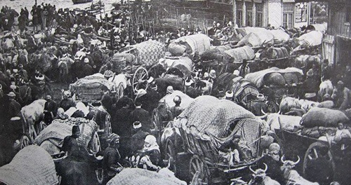 Në foto largimi me forcë i popullsisë çame nga Greqia në Turqi, sipas marrëveshjes së Lozanës e 30 janarit 1923. Ky proces u ndal pasi qeveria shqiptare e drejtuar nga Ahmet Zogu protestoi dhe bëri veprimet e duhura, në mënyrë që shqiptarët e Çamërisë të mos konsideroheshin turq në shkëmbimet turko-greke...