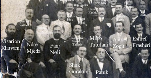 Foto e pjesshme e Këshillit Kombëtar (parlamenti). Viti 1922. Kam identifikuar shumë deputetë. Dallohen Fan Noli, Ahmet Zogu, Bektash Cakrani, Ndre Mjeda, Visarion Xhuvani, etj (emrat mund të lexohen)...