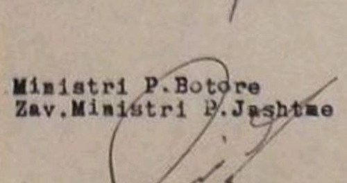Nënshkrimi i Hilë Mosit. E njohin më shumë si poet, por ai ka qenë ndër figurat kryesore të shtetit shqiptar. Ndër të tjera sekretar i parlamentit në vitet 1920 dhe 1922; më 1921 dhe 1930 – 1932 ministër i Arsimit; më 1921 – 1922, 1924, 1926 – 1927 dhe 1929 – 1930 prefekt në Korçë; në vitin 1924 prefekt në Gjirokastër...